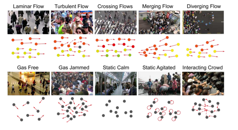 Crowd11은 세분화된 군중 행동 분석을 위해 2017년 제안된 데이터셋이다. youtube, pond5, gettyimages에 업로드된 6272개의 비디오와 9가지의 기존 데이터셋을 포함한다. 많은 사람들이 이동하는 형태에 따라 11개의 클래스로 구분하여 기존 데이터셋의 약점을 보완하고자 했다. 군중 모니터링, 이상탐지 관련 연구를 하기에 좋은 데이터셋이다.