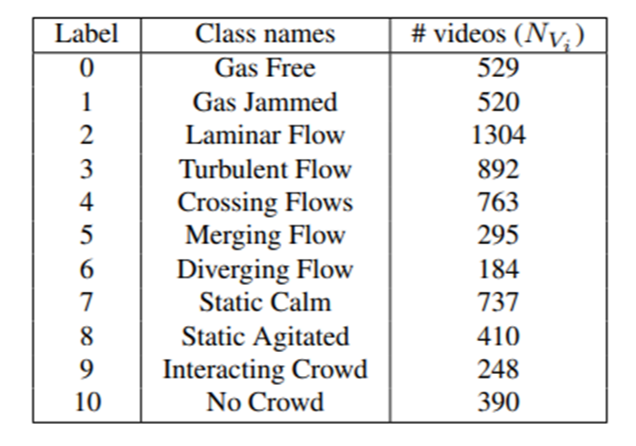 CROWD 데이터는 11가지의 비디오 클래스를 제공한다.
